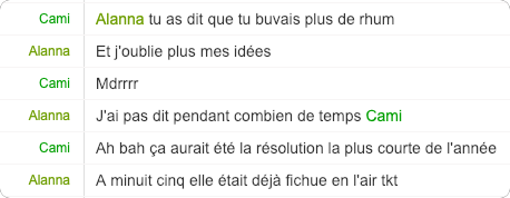 J'avoue que j'ai profité du fait qu'il y avait un prénom qui se ressemblait à peu près pour faire le rapprochement. Mais il n'est pas difficile de trouver des liens entre les deux jeunes filles pleines de vie, souriantes et parfois surprenantes. Camille (pas celle de Scènes de Ménages, l'autre) devrait songer à se trouver un plus vieux mari, ça marcherait, j'en suis sûr.